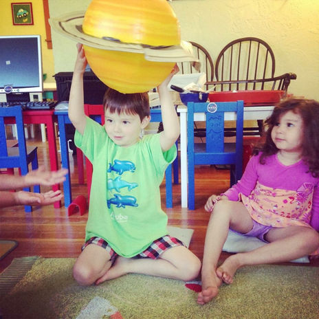 Our school has a large indoor classroom with space to move around and spread out with any of our learning tools and toys (including a table for every child for art and meals), a kitchen, and a bathroom. We also have a wide variety of outdoor play activities in our large, fenced-in, backyard!